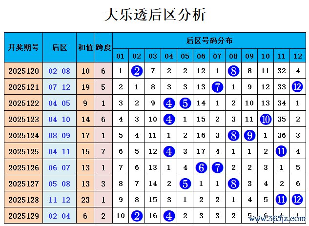前区0路分析:前区0路号码上期开出2个号码03、09,前十期断区3次,前十期0路开出17个号码,走势较温;本期预测0路号码走势降温,本期看好出1个0路奖号,和蔼号码:18