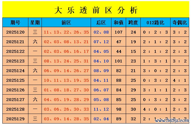 前区2路分析:前区2路号码上期开出2个号码14、35,前十期断区0次,前十期2路号码开出18个号码,走势较热,本期看好2路号码走势升温,本期看好出2个2路奖号,和蔼号码:05、29